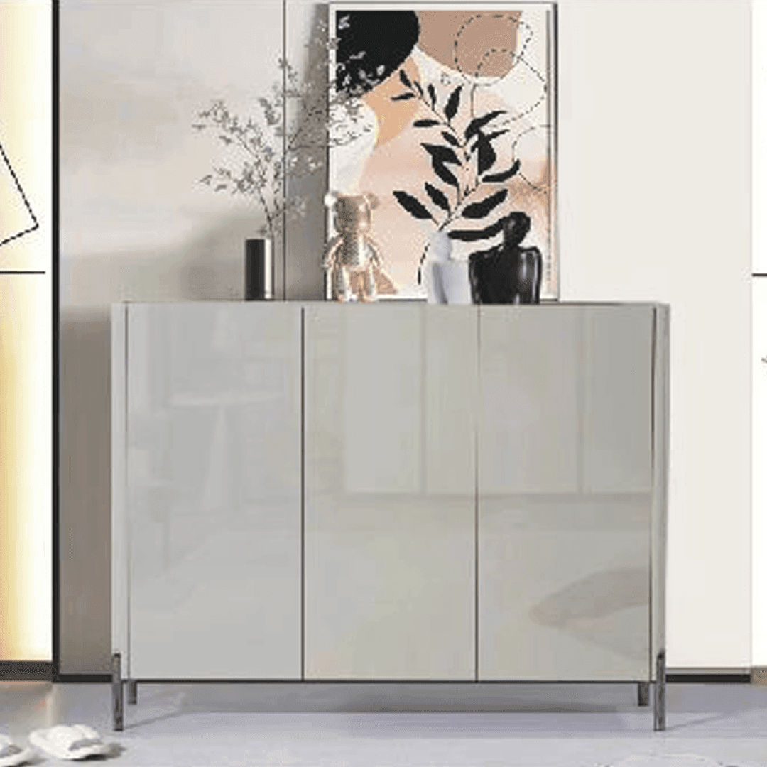 Vanora 3 Door Shoe Cabinet in Glossy Grey with Sintered Stone Top