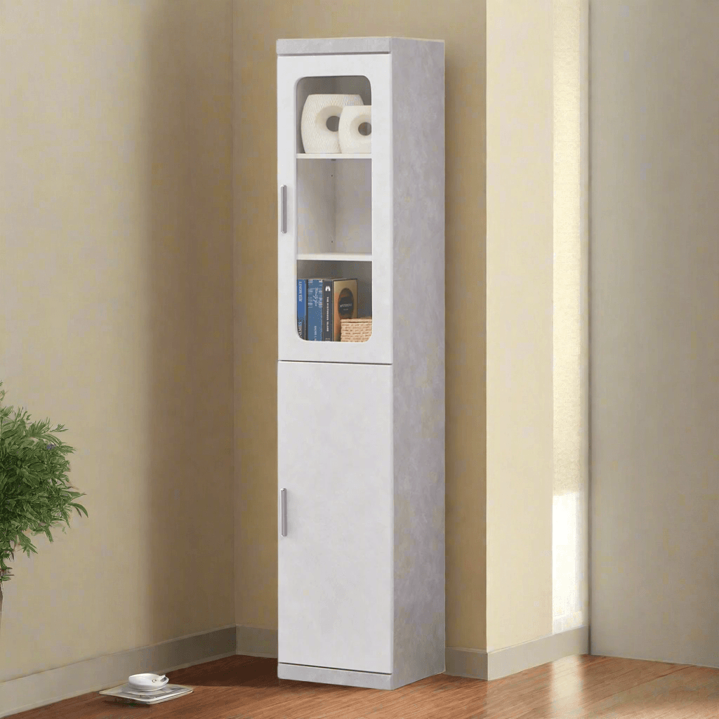 Maximize your space with the Vaphira Slim Bookshelf, a compact yet functional storage unit designed for modern homes. Crafted from high-quality plywood, this bookshelf features 1 glass door with 3 shelves and a total of 6 layers of storage, making it perfect for showcasing books, décor, or collectibles while keeping them protected.