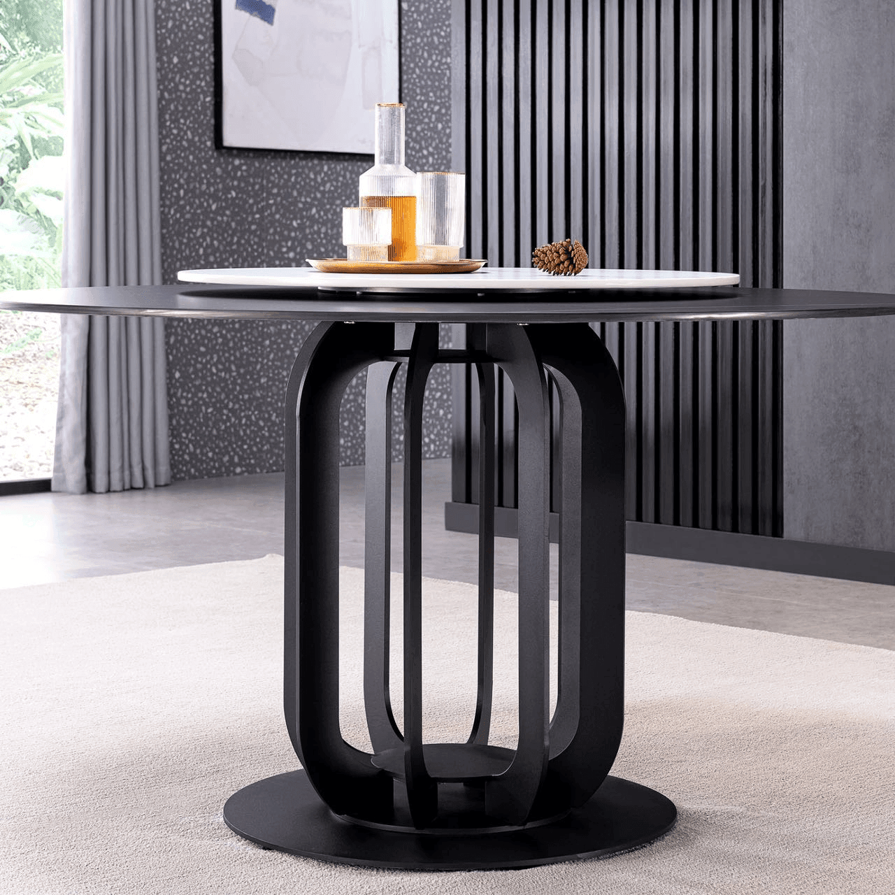 Veda Sintered Stone Round Dining Table with Lazy Susan