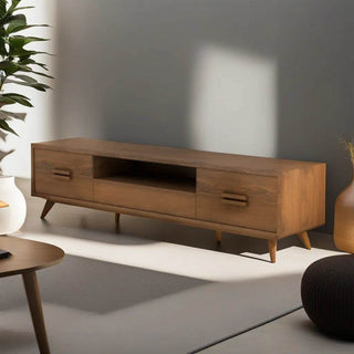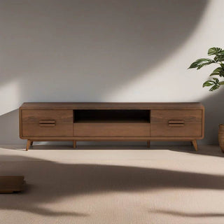 Create a Scandinavian-themed entertainment space with the combination of open and closing shelves offered by the Vela TV Console. Keep your living area tidy while showcasing your favourite decor pieces and enjoying the luxury of hiding unsightly clutter.