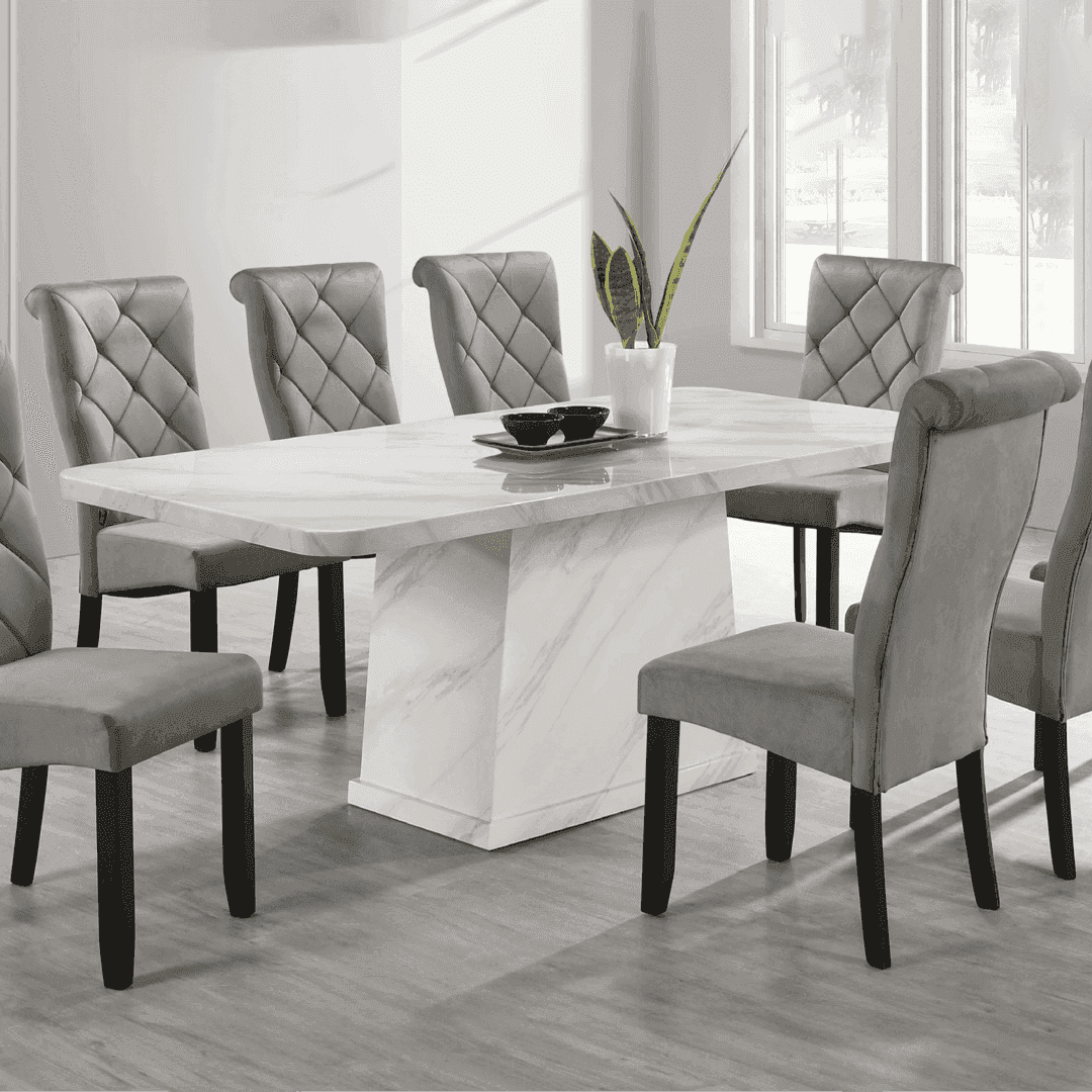 Indulge in the luxurious elegance of the Vereme Marble Dining Table. Crafted from white Vereme marble, this dining table exudes sophistication and exclusivity. Elevate your dining experience with the sensory experience of the smooth marble surface. Make a bold statement with this stunning piece that seamlessly combines art and practicality.