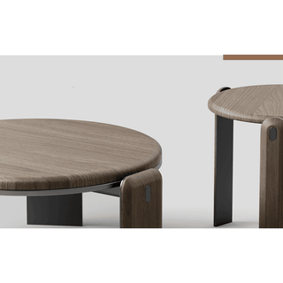 Crafted with concentric upward lines and a blend of luxurious walnut-colored wood veneer and sleek steel, this Vion Wooden Coffee Table embodies the perfect fusion of classical elegance and contemporary fashion.