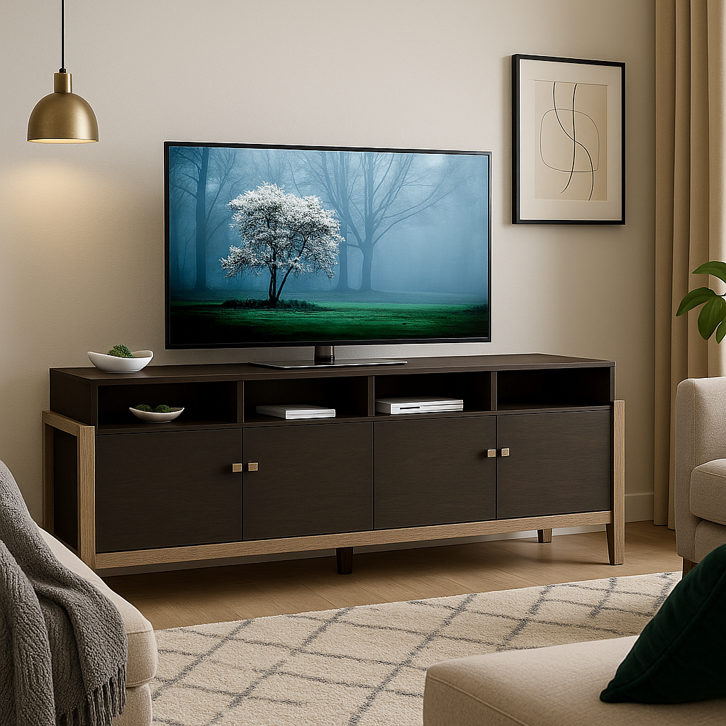 • 4 Open Shelves – Ideal for consoles, routers, or decorative items