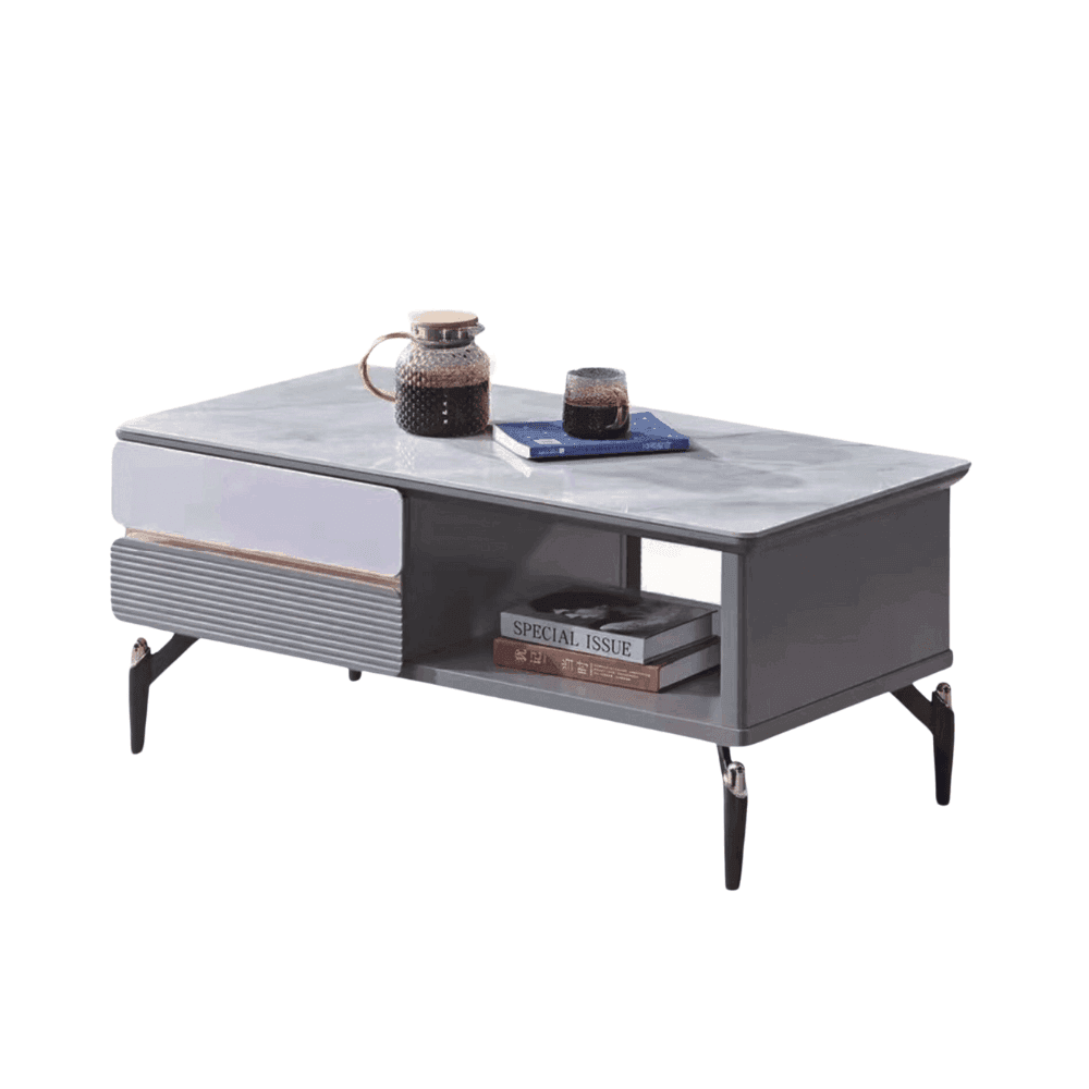 The Willow Sintered Stone Coffee Table is a chic and practical addition to any home. This table isn't just about good looks; its sintered stone top is a real trooper, standing up to spills and scratches like a champ. But here's the kicker: two smooth-sliding drawers! It is ideal for hiding all those bits and pieces, keeping your living space neat. Plus, it's a breeze to clean – just a quick wipe and spotless.