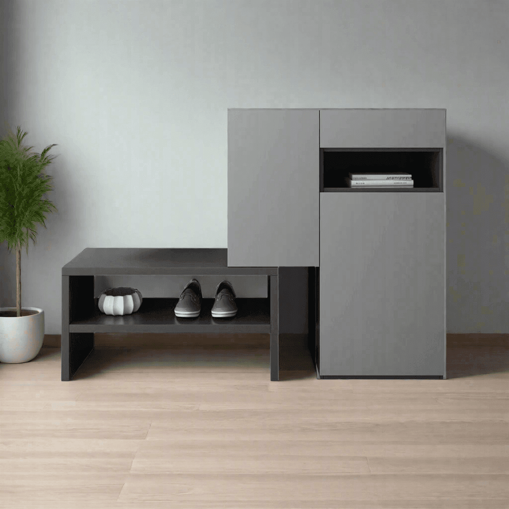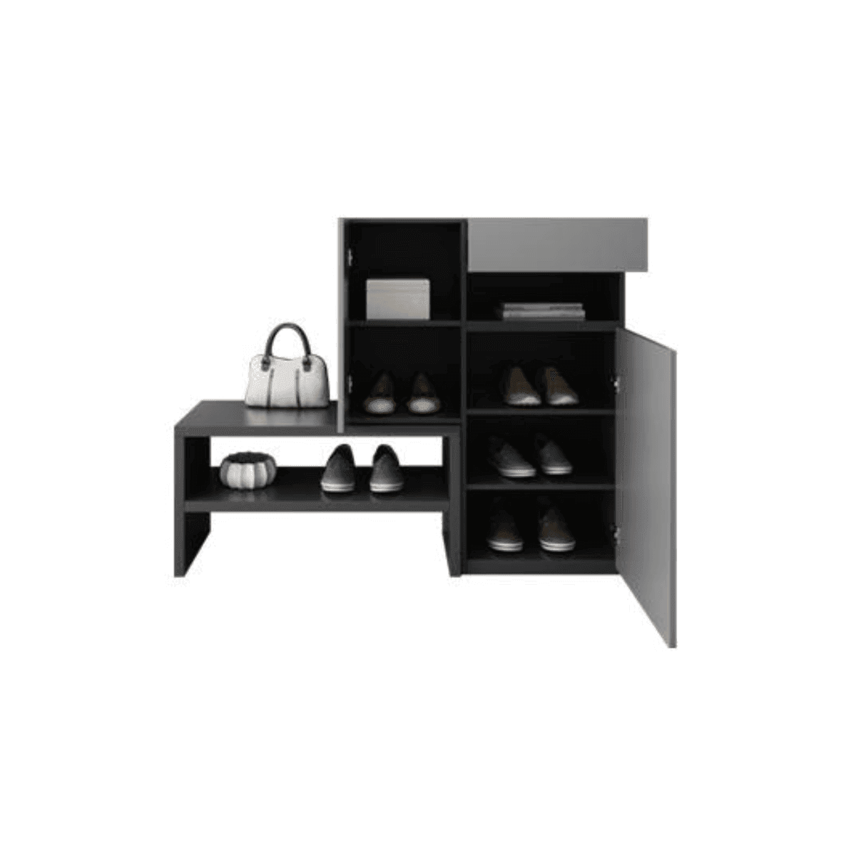 The Zion Shoe Cabinet with Seat is a clever piece made from sturdy MDF wood. Not only does seat cabinet store your shoes neatly away, but it also offers a comfy seat for you to slip on your footwear with ease.